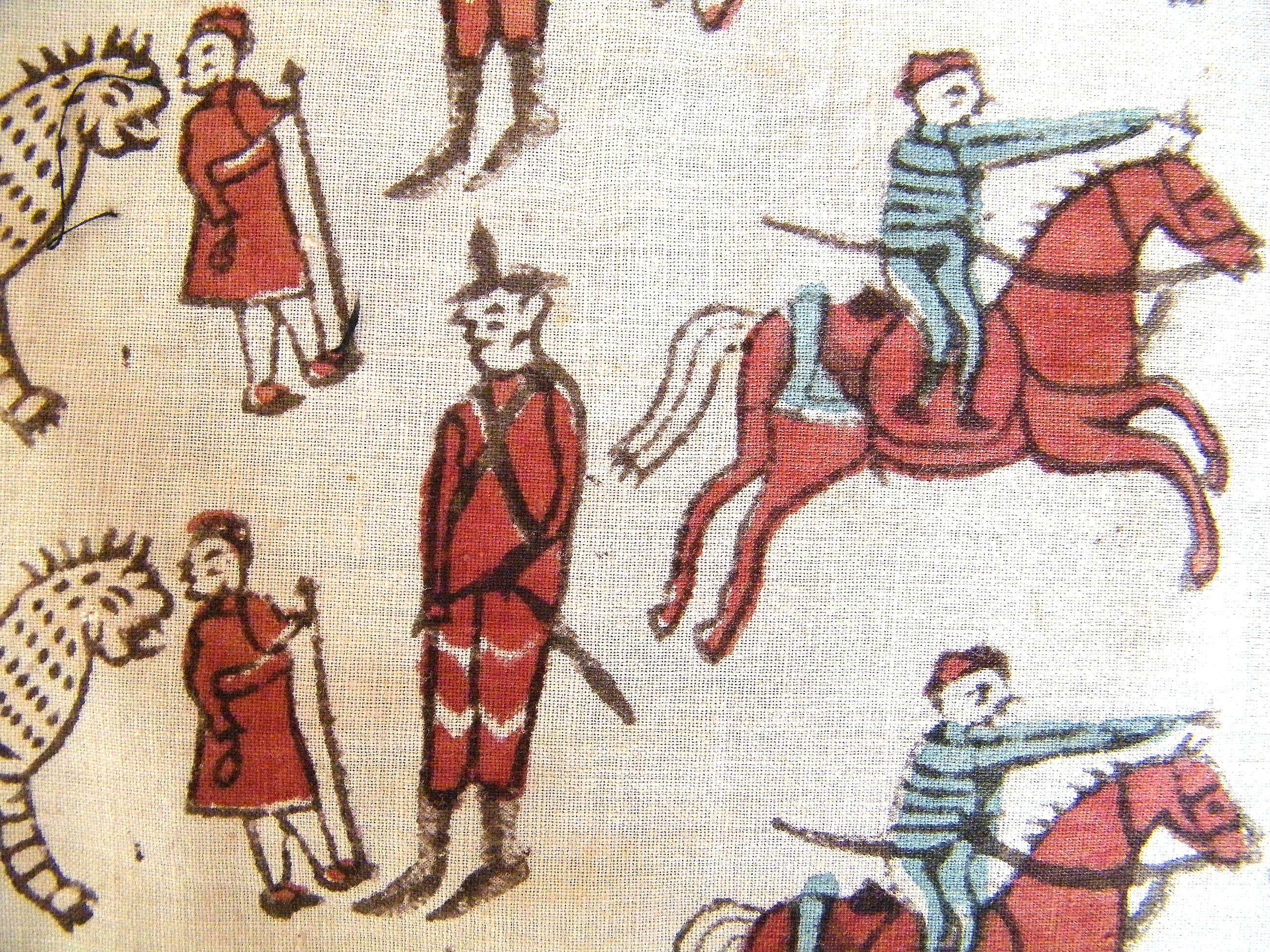 Détail d’un tissage utilisé pour les fêtes. Coton, impression au tampon. Photo Marchés d’Asie.