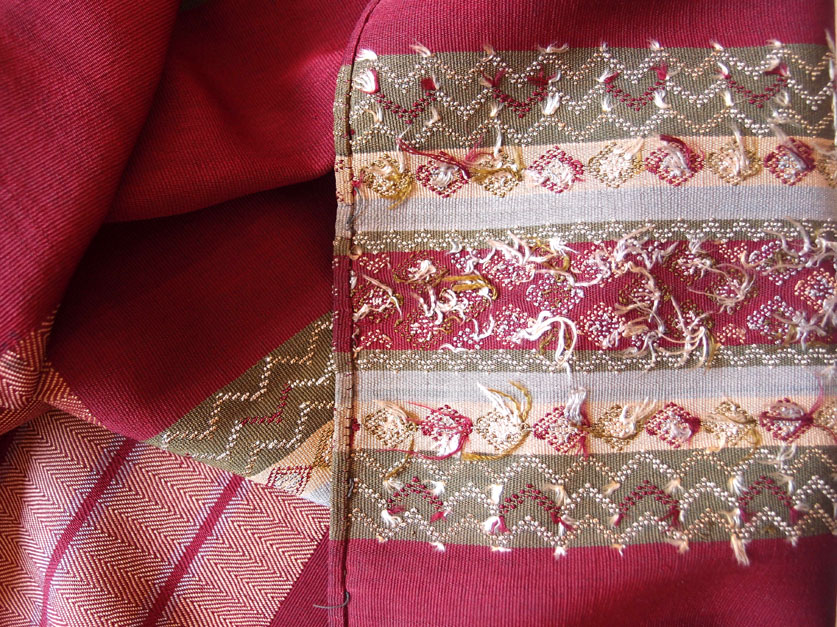 Envers de la broderie d’une couverture Falam en soie. Photo Marchés d’Asie.